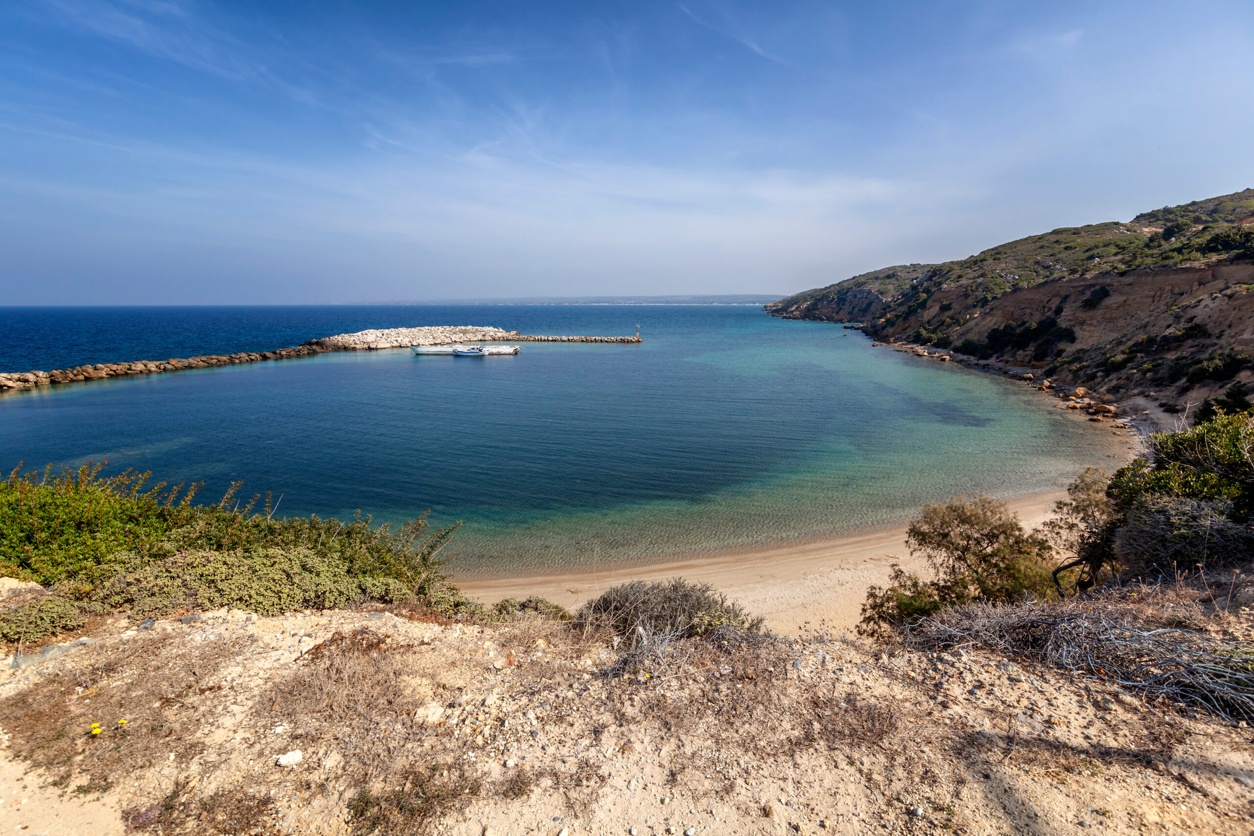 Είναι η πιο όμορφη από όλες τις παραπάνω, και οργανωμένη φυσικά. Εκεί, δεν θα κάνετε μόνο μπάνιο, αλλά θα δείτε και σημαντικά αξιοθέατα. Λίγα μέτρα από το νερό βρίσκονται τα ερείπια δύο παλαιοχριστιανικών βασιλικών (5ου ή 6ου αιώνα) και απέναντι το νησάκι Κέφαλος με το ξωκλήσι του Αγίου Νικολάου, όπου μπορείτε να πάτε και κολυμπώντας.