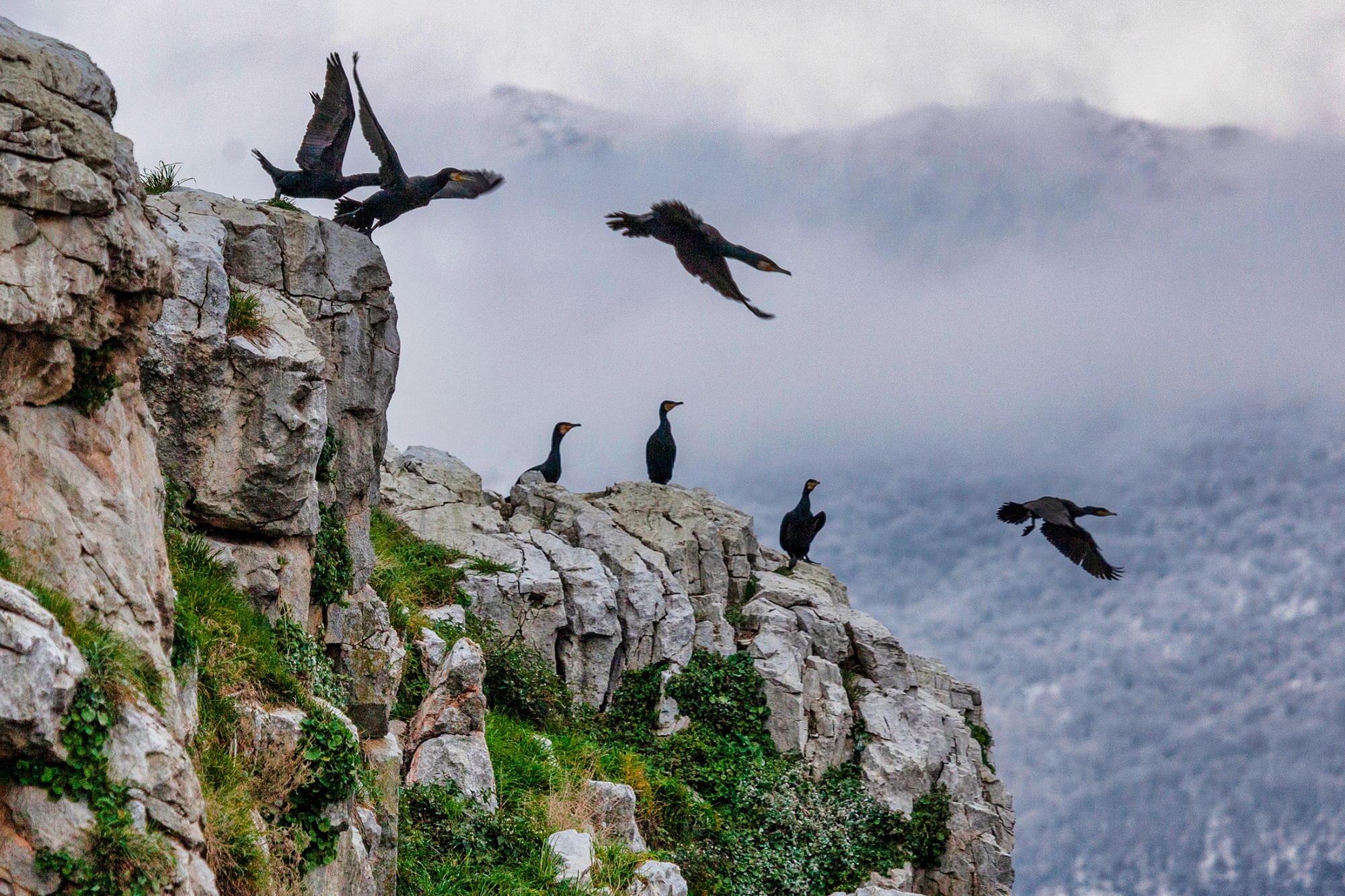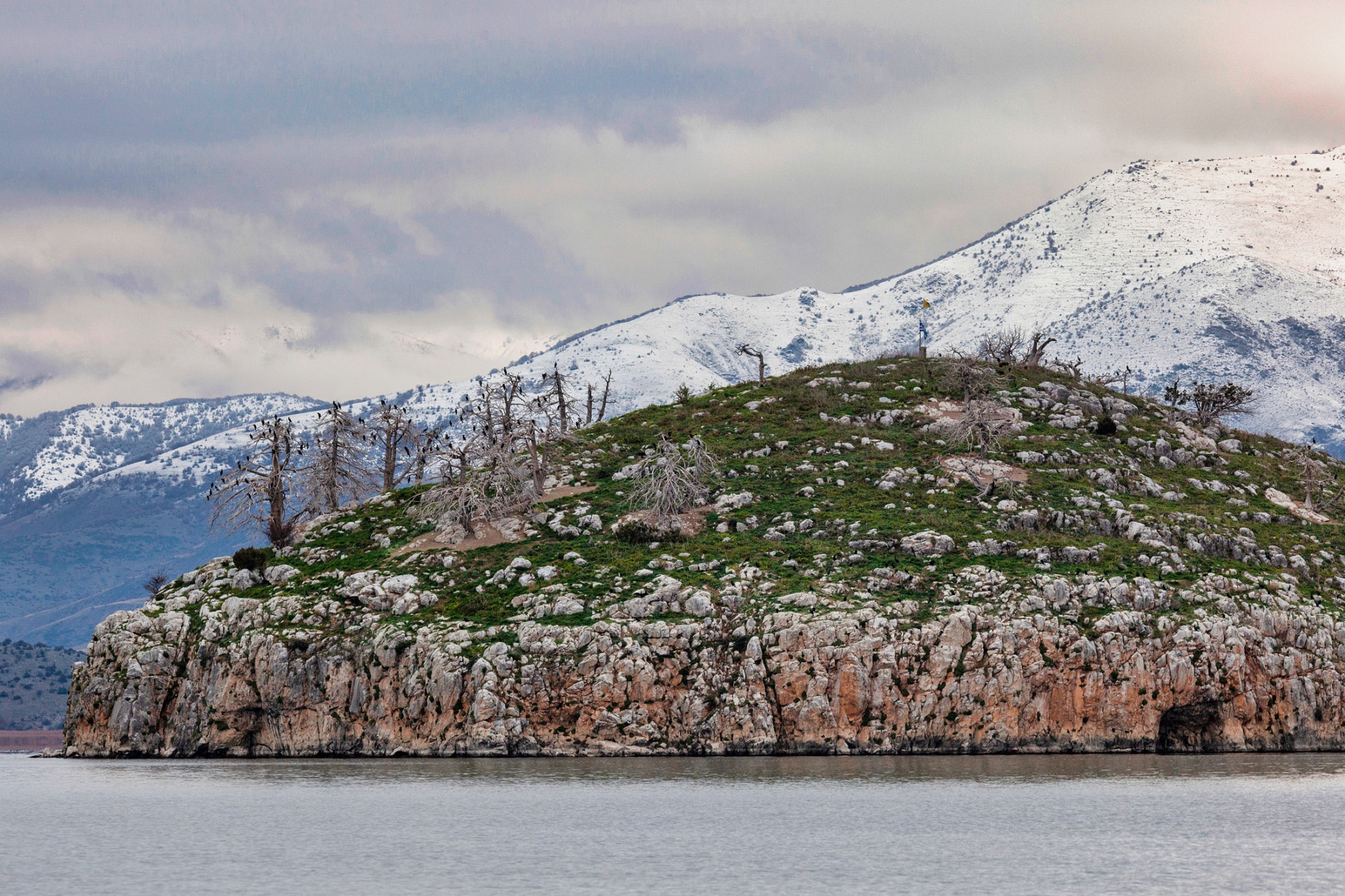 Τα πουλιά αυτά συνυπάρχουν αρμονικά πάνω στη νησίδα, αφενός λόγω της διατροφικής αφθονίας που εξασφαλίζει η λίμνη της Μικρής Πρέσπας, αφετέρου λόγω των διαφορετικών τους συνηθειών. Οι κορμοράνοι, δηλαδή, οι οποίοι διατηρούν εδώ μία από τις μεγαλύτερες αποικίες τους στην ελληνική επικράτεια, φτιάχνουν τις φωλιές τους στις κορυφές των δέντρων. Οι αργυροπελεκάνοι, από την άλλη, προτιμούν τα βράχια και τις καλαμιές, όπου φωλιάζουν ο ένας δίπλα στον άλλον, εξασφαλίζοντας έτσι την καλύτερη δυνατή προστασία για τα νεογνά τους –και κατά τη διάρκεια της αναπαραγωγής (Ιανουάριο με Ιούλιο), στην οποία γεννούν μόλις 2 αβγά, αλλά και στο κρίσιμο στάδιο της ανάπτυξης, αφού επί 2,5 μήνες τα μικρά εξαρτώνται απόλυτα από τους γονείς για την επιβίωσή τους.